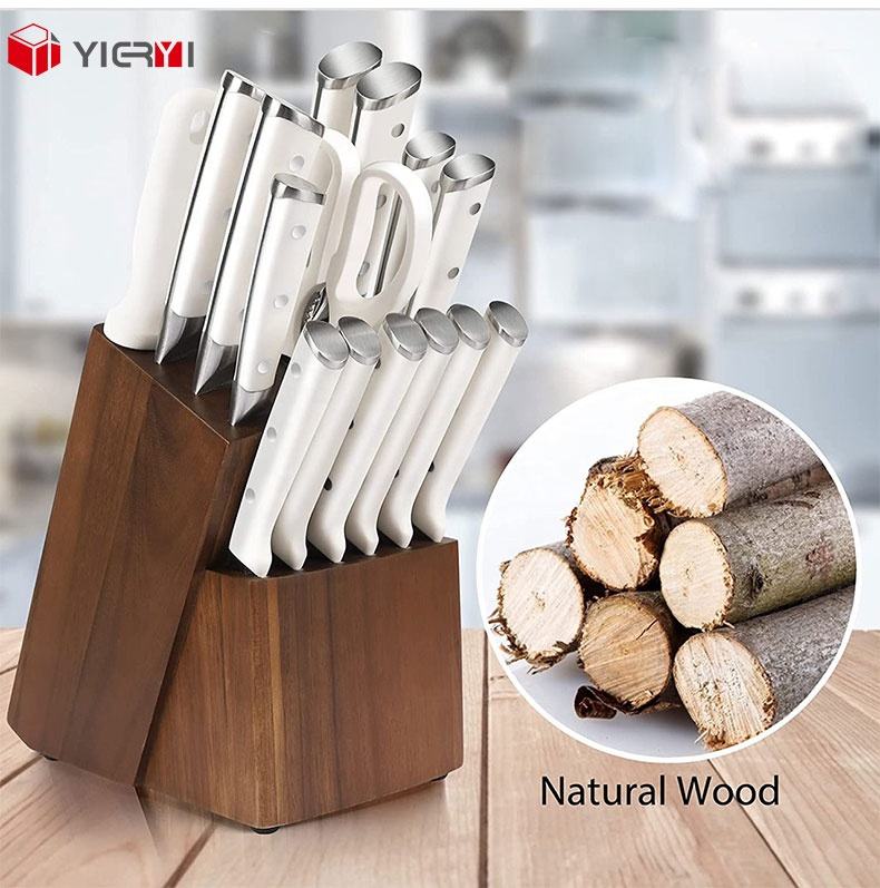 High Carbon German Stainless Steel White Knife Set 15 Pieces Kitchen Knife Set with Wooden Block 6 Steak Knives Cutlery