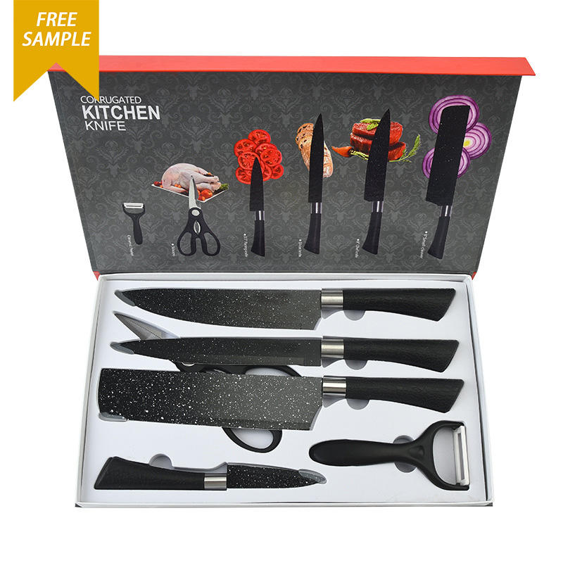 High Carbon Stainless Steel Household Kitchen Knife Set 6pcs Chef’s Blades with Damascus Free Sample and Gift Box Included