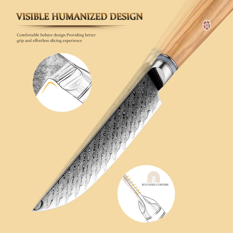 High Carbon Stainless Steel Kitchen Chef Knife AUS-10 5 Inches Damascus Steel Kitchen Steak Knife with Olivewood Handle