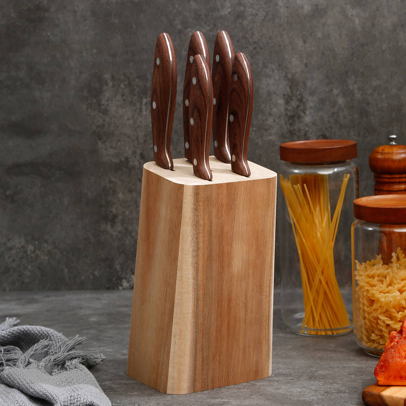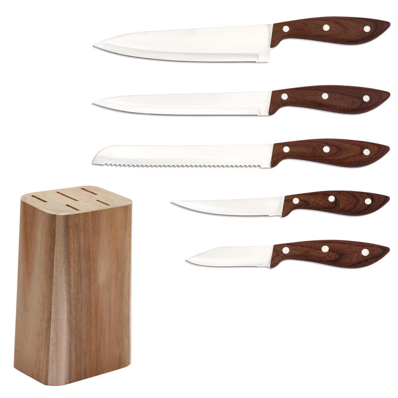 High Carbon Stainless Steel PP Handle 6pcs Wooden Block Kitchen Knife Set