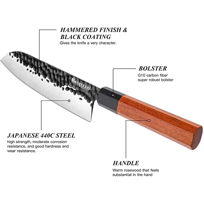High Grade 7-Inch Santoku Chef Knife Japanese 440C Stainless Steel Kitchen Knife