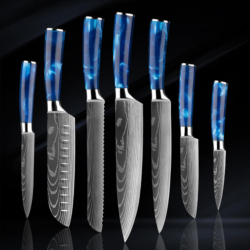 High Hardness Kitchen Knives Professional Japanese Butcher Knife Colorful Kitchen Knife Set with Acrylic Stand