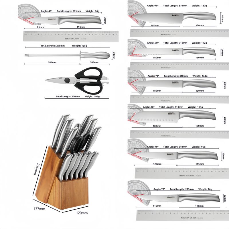 High Quality 15 Pcs Stainless Steel Kitchen Knife Set With Acacia Wood Block