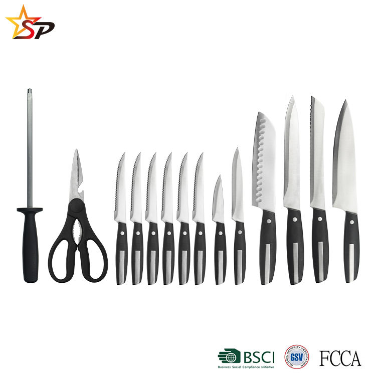 High Quality 15 Pcs Stainless Steel POM Handle Kitchen Knife Set