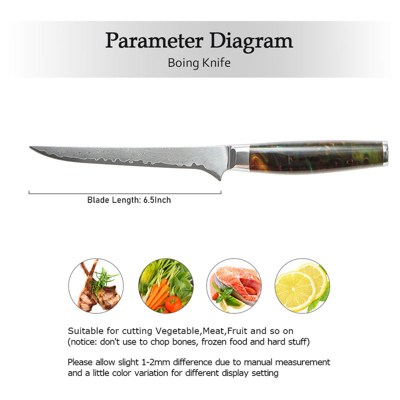 High Quality 6.5 Inch Damascus Steel Fillet Knife With Resin Handle