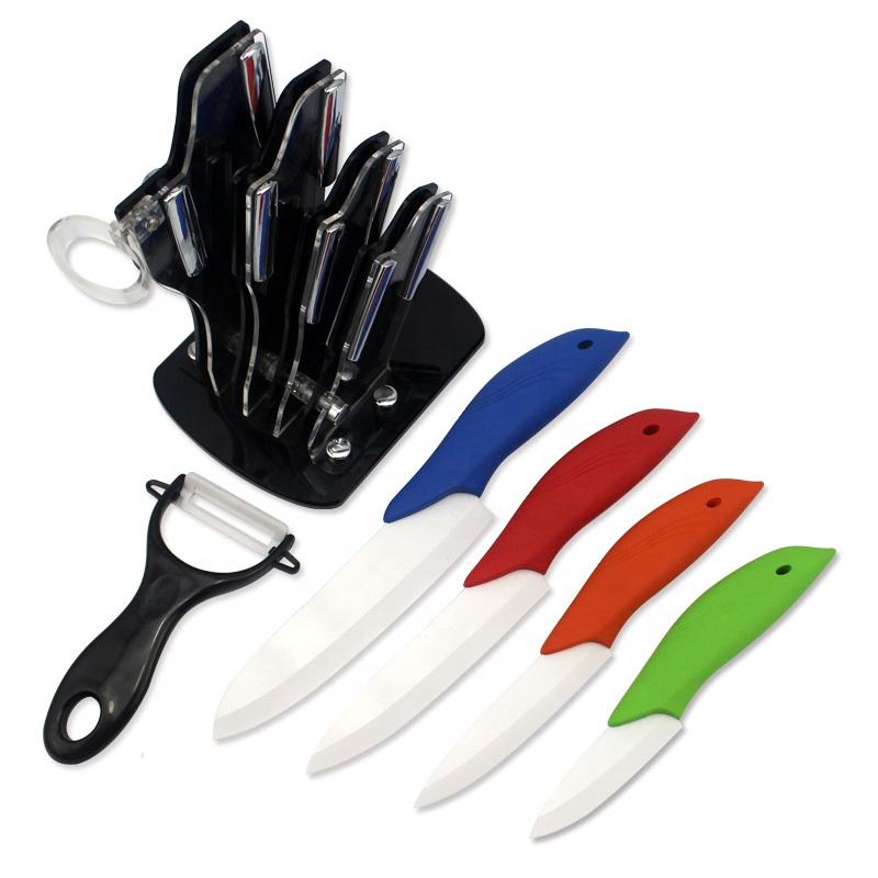 High Quality 6 Piece Zirconia Kitchen Ceramic Knife Set 3″ 4″ 5″ 6″ Inch + Peeler+Holder