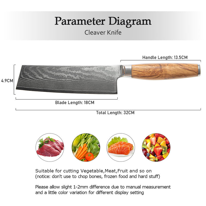 High Quality 7 Inch Damascus Steel Cleaver Knife Sharp Knife With Olive Wood Handle