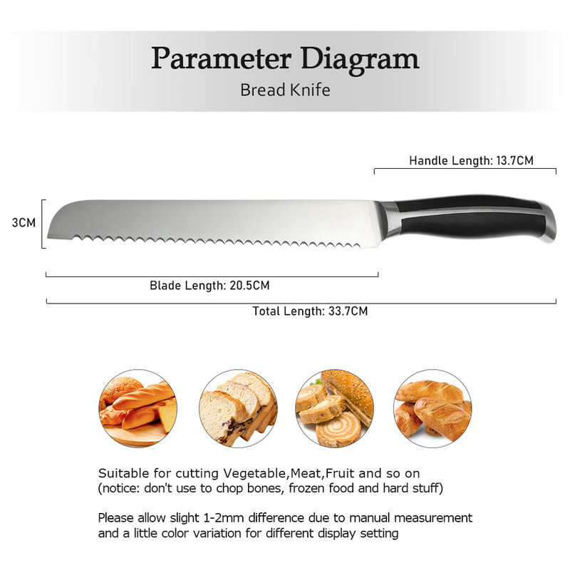 High Quality 8 Inch 3Cr13 Stainless Steel Bread Knife With 430ss PP Handle