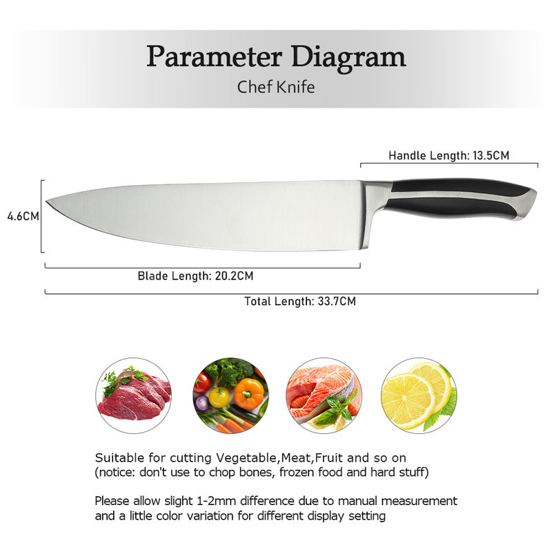 High Quality 8 Inch 3Cr13 Stainless Steel Chef Knife With 430ss PP Handle