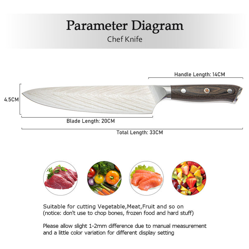 High Quality 8 Inch Damascus Steel Chef Knife Sharp Kitchen Knife With Wooden Handle
