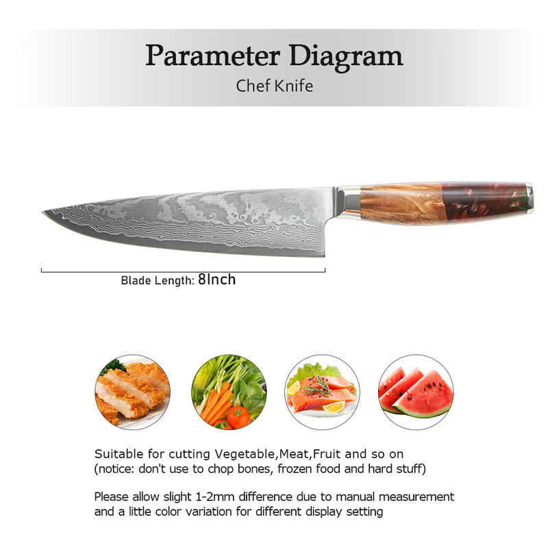 High Quality 8 Inch Damascus Steel Kitchen Chef Knife With Pakkawood Handle