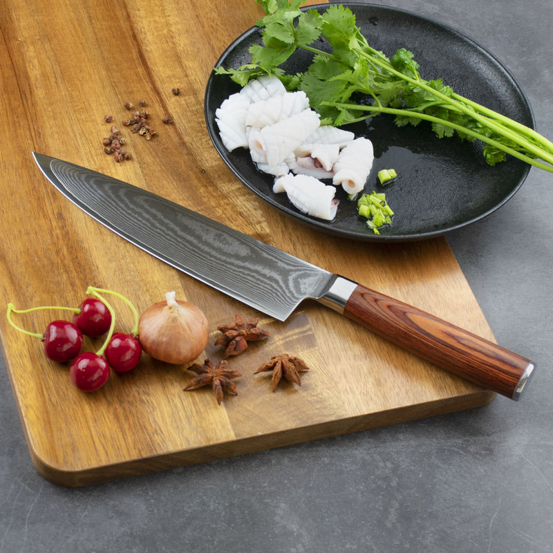 High Quality 8 Inch Damascus Steel Knife Vg10 Pakka Wood Handle Damascus Chef Knife