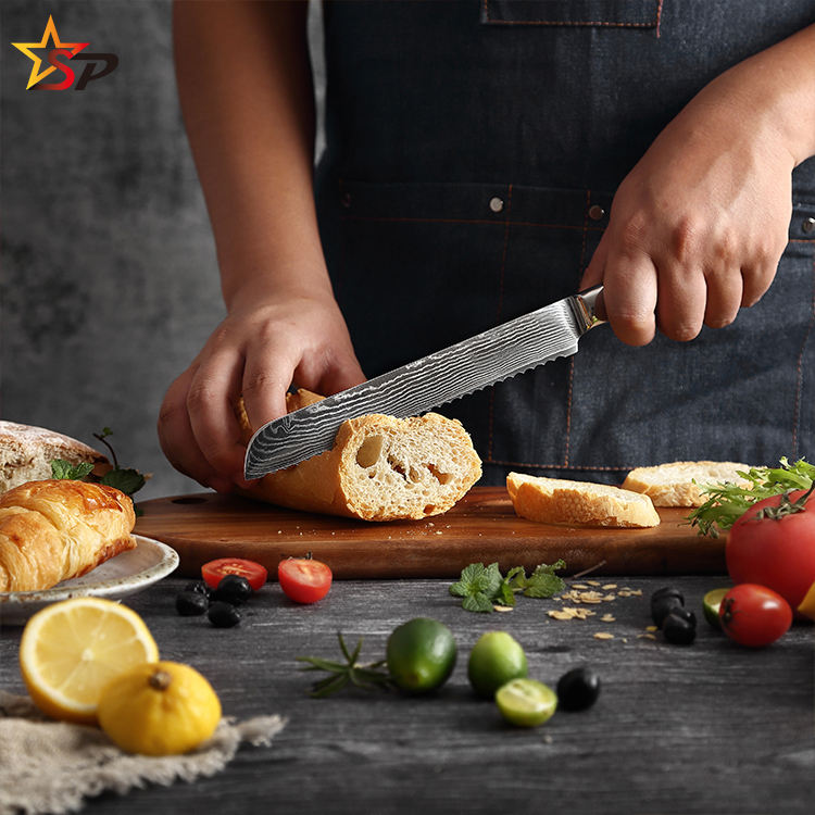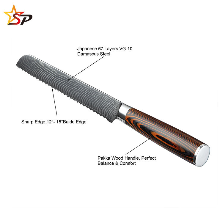 High Quality 8 Inch Vg10 67 Layers Damascus Steel Kitchen Knife Pakka Wood Handle Damascus Bread Knife