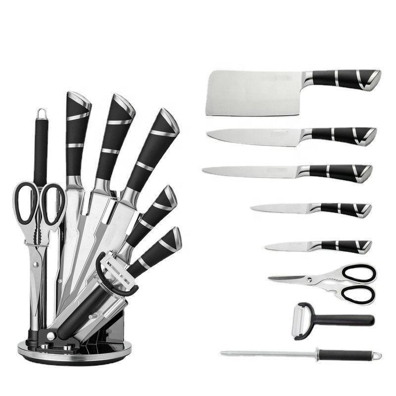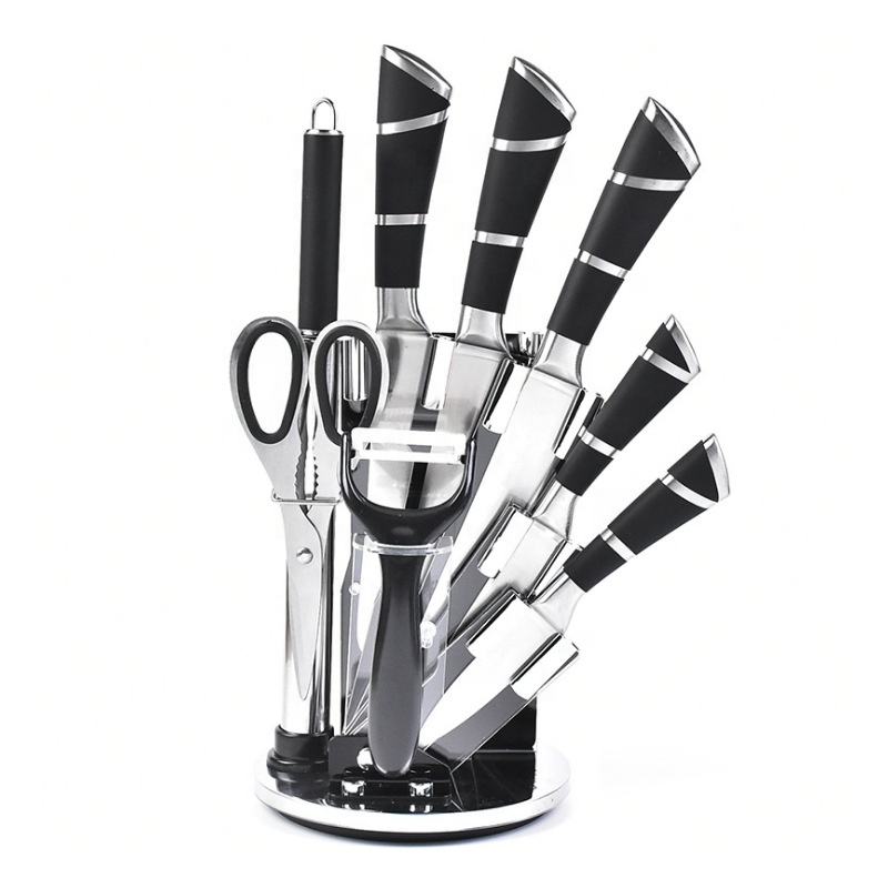 High Quality 9pcs Kitchen Knife Set With Horseshoe Handle and Acrylic Base Holder