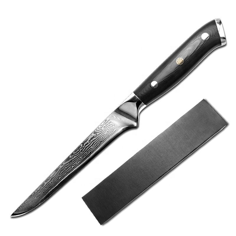 High Quality Fillet Damascus Steel 8 Inch Nature Ebony Wood Yangjiang Boning Chef Kitchen Knife