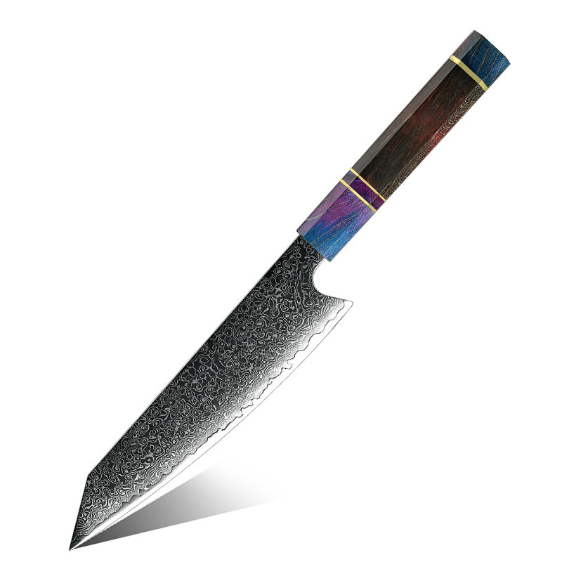 Japanese 10cr15mov Damascus Stainless Steel Kitchen Chef Kiritsuke Knife With Octagonal Wooden Handle Oem Customized Box Logo