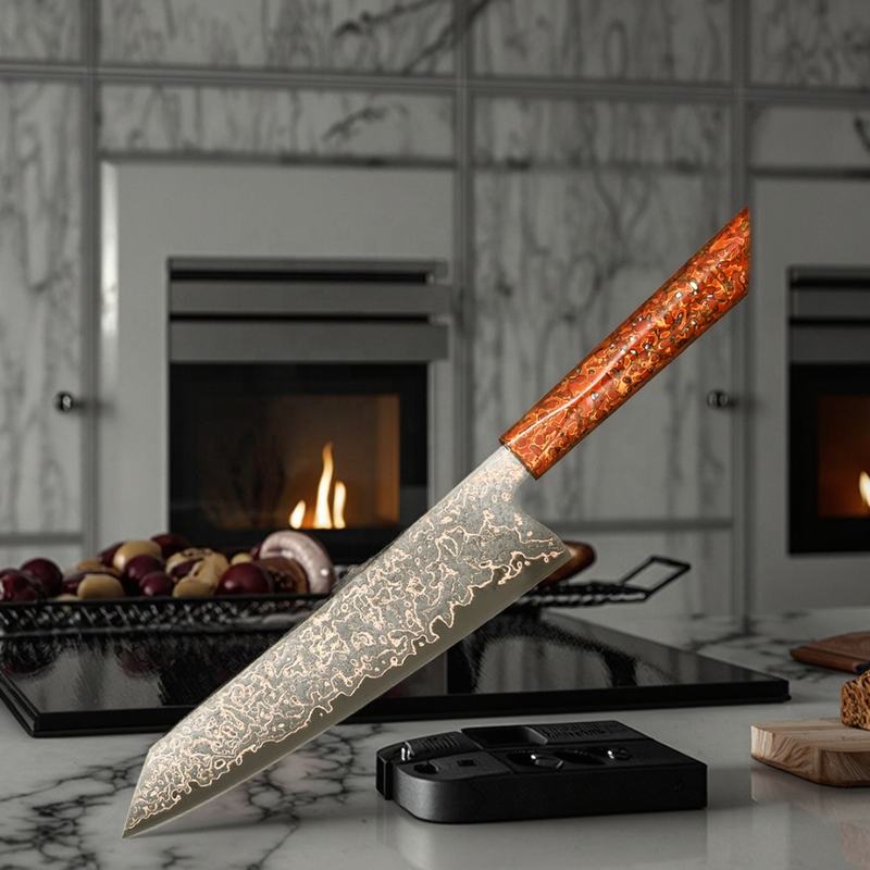 Japanese 33 Layers Blade Copper Damascus Kiritsuke High Carbon Steel 8.5 Inch Handmade VG10 Chef Kitchen Knife