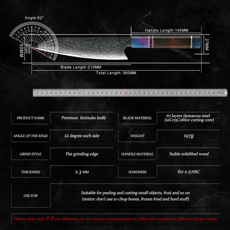 Japanese 67 Layers Damascus High Carbon Steel Kitchen Chef Kiritsuke Knife Solidfied Wood Handle Cooking Tools ECO Friendly NEW