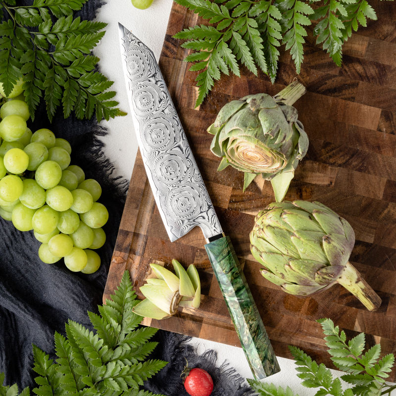 Japanese 8 Inch Damascus Stainless Steel Kitchen Knife Kiritsuke Knife with Solidified Wood and Copper Bolster Handle