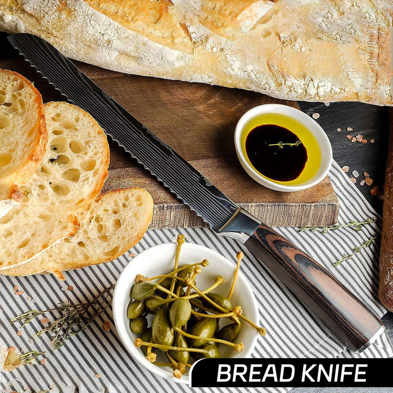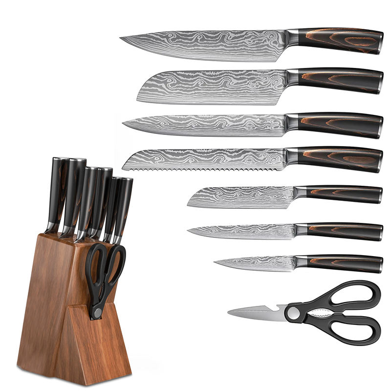 Japanese Carbon Stainless Steel Chef Knives Damascus Laser Pattern Slicing Santoku Tool Kitchen Knife Set