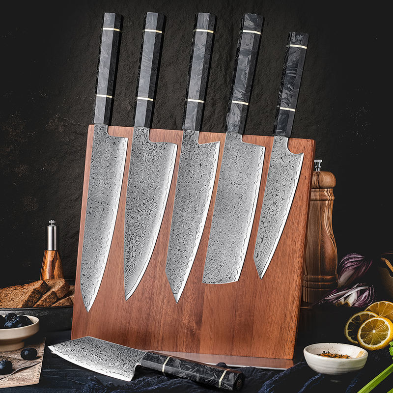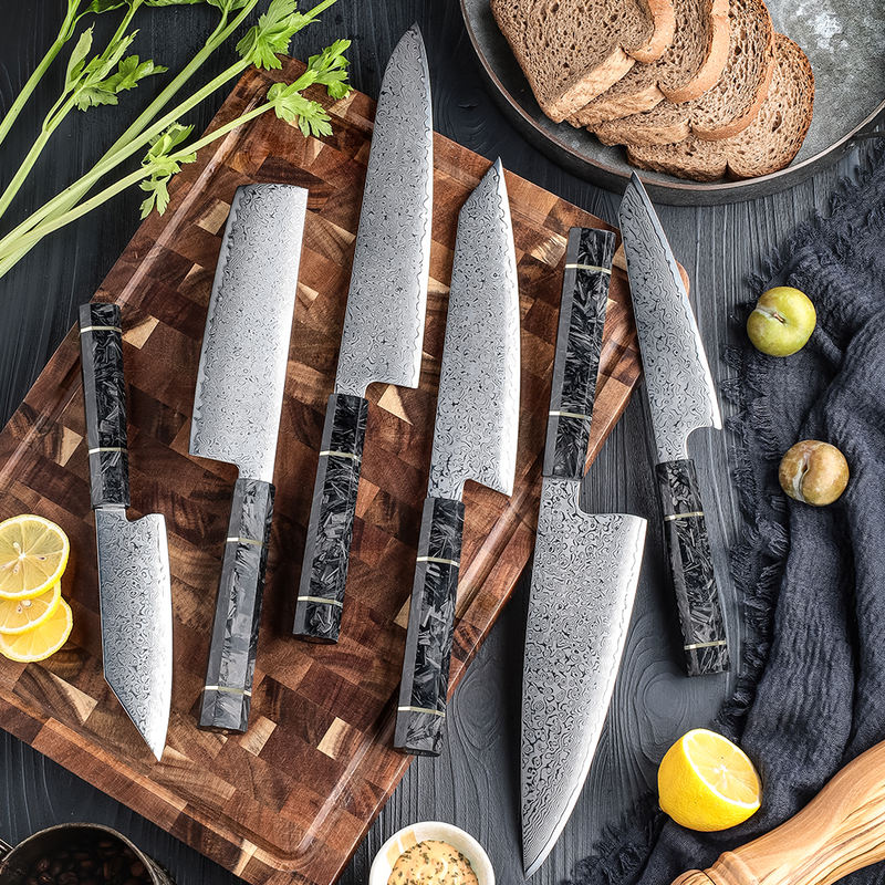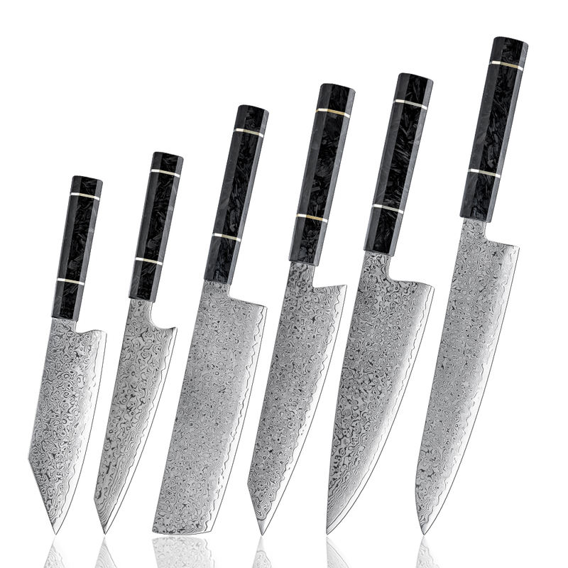 Japanese Damascus Stainless Carbon Steel 6Pcs Kitchen Knife Set Chef Utility Santoku Nakiri Knife with Carbon Fiber Handle