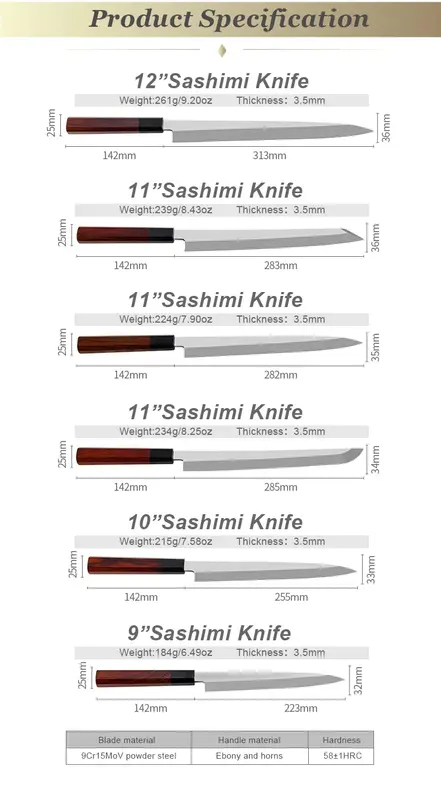 Japanese Handmade Professional High-End Kitchen Knives Sashimi Sushi Knife Set Powdered Steel Fillet Sashimi Knife