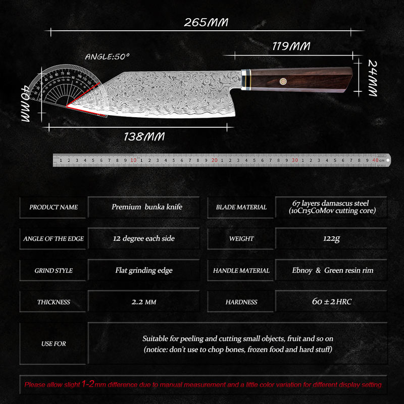 Japanese Kitchen Chef Knife 67-Layers Damascus Carbon Stainless Steel Bunka Knife with Wood Ebony Handle