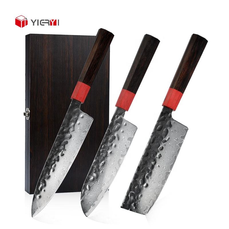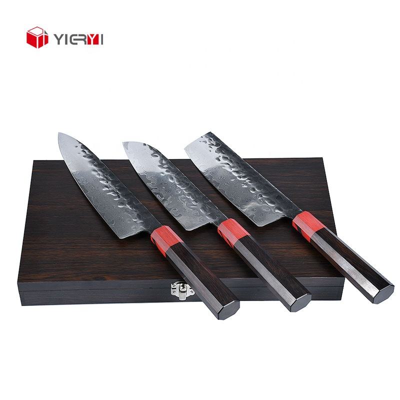 Japanese Luxury Forged Damascus VG10 Chef Knife 3 Pcs 7 Inch Kitchen Santoku Knife Set With Wooden Box