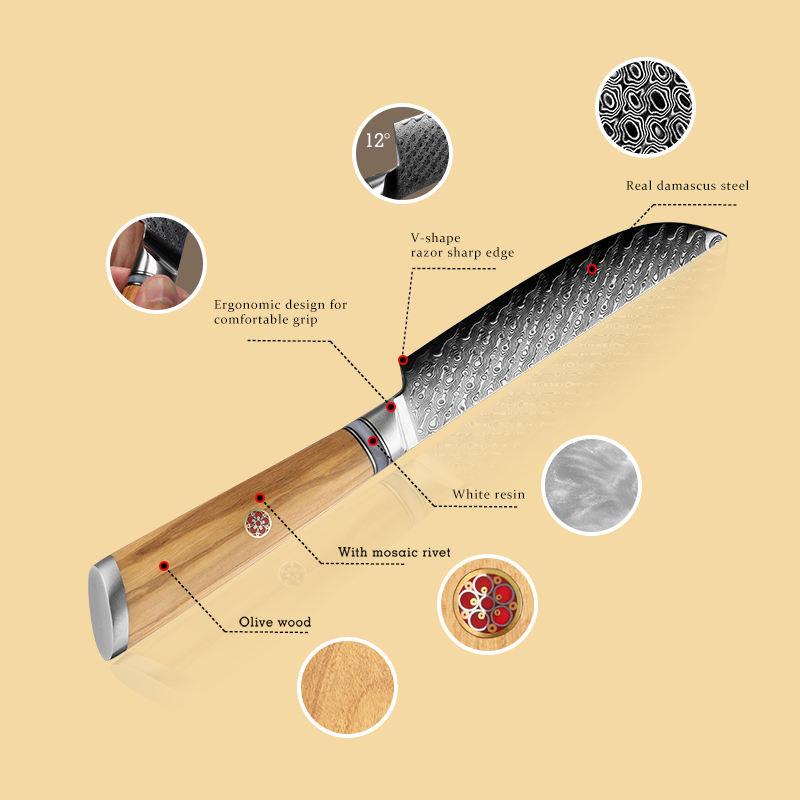Japanese Stainless Steel Tableware 5 Inch Ultra Sharp Kitchen Chef Steak Knife with Olive Wood & Resin Handle