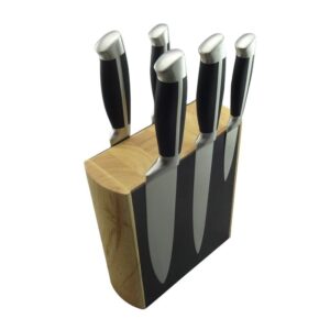Rubber Wood Magnet Knife Block with Hollow Handle Kitchen Knife Set