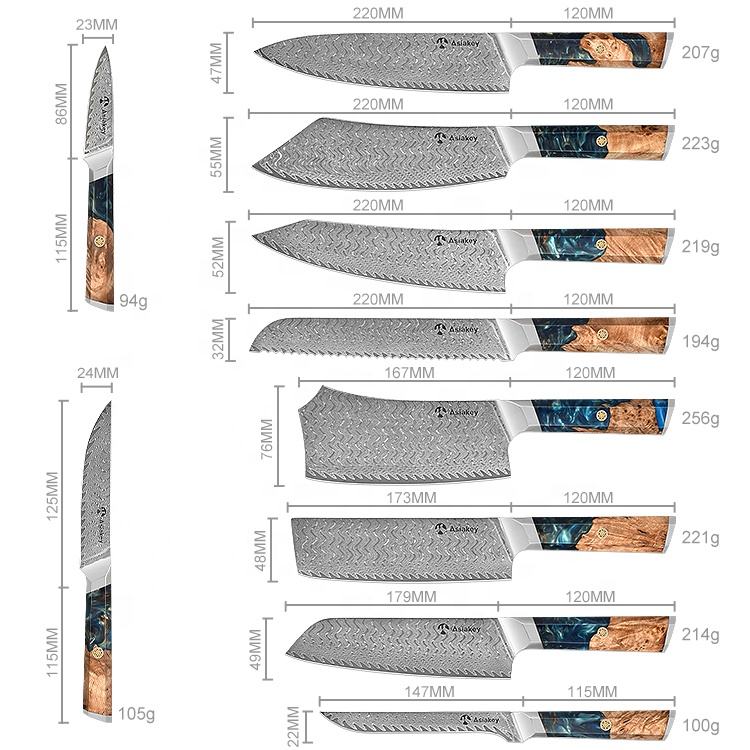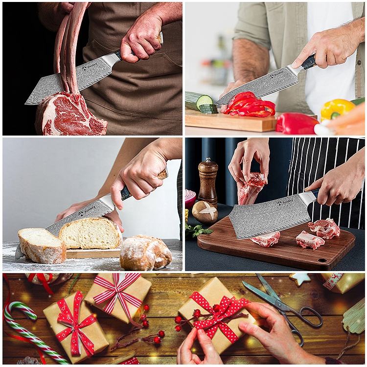 High Performance Epoxy Resin Handle VG10 Damascus Steel Bread Paring Cleaver Knife Set