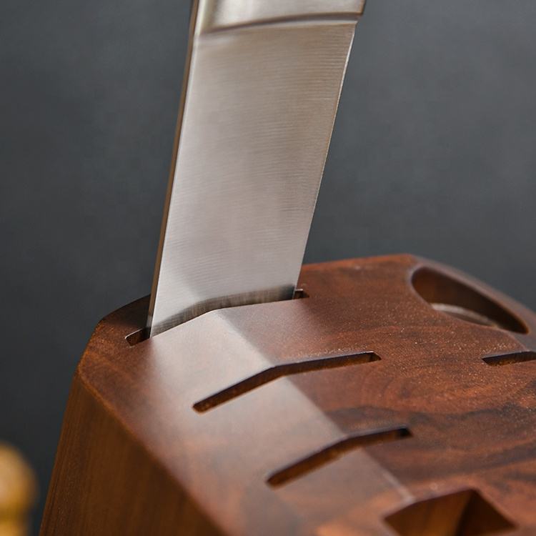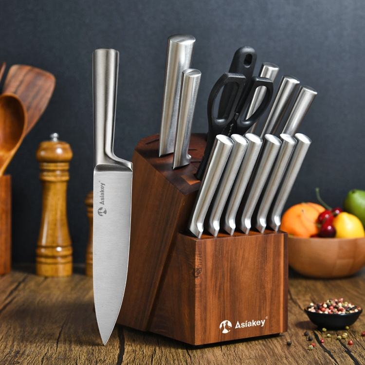High Carbon Stainless Steel 15PCS Full Tang Acacia Wood Knife Block Set With Sharpener&Scissors